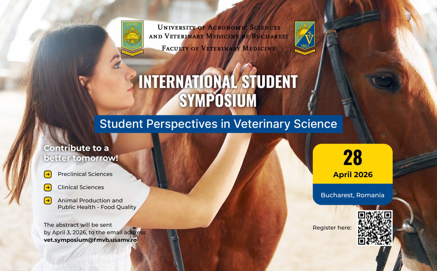 La Faculté de Médecine Vétérinaire de Bucarest (Université des Sciences Agronomiques et de Médecine Vétérinaire) organise le 28 avril 2026 l’édition 2026 du Simposion Scientifique Étudiant Student Perspectives in Veterinary Science, un événement international dédié aux étudiants et doctorants passionnés par la recherche en médecine vétérinaire. Devenu un rendez‑vous important dans le milieu académique, le […]